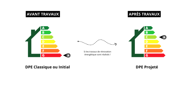 Prêt immobilier Prêt immobilier et DPE : sont-ils devenus indissociables ? Publié le 23 mai 2024 En tant qu’expert, il est temps de vous avouer chers futurs emprunteurs que : pour tous projets en 2024, le prêt immobilier et DPE sont devenus inséparables !Il est essentiel de lever le voile sur la façon avec laquelle ces deux éléments interagissent et impactent le financement de votre projet d’achat immobilier. Le Diagnostic de Performance Énergétique, dit DPE, joue un rôle crucial dans l’obtention de votre crédit immobilier.Nous allons donc explorer les éléments importants au niveau du DPE et la façon dont les prêteurs peuvent l’inclure dans le process d’octroi de crédits immobiliers.7 minutes23 mai 2024Qu’est-ce que le DPE ? Pourquoi est-il important pour un prêt immobilier ?Le DPE (Diagnostic de Performance Énergétique) évalue la consommation énergétique d’un logement et ses émissions de gaz à effet de serre. Il classe les biens immobiliers de A à G, A étant la meilleure performance énergétique et G la pire.Pour un emprunteur, cette information peut-être cruciale, car elle influence directement la décision des banques lors de l’octroi d’un prêt immobilier. Comment ? Nous allons voir ça en détail.Comment le DPE est devenu un critère important ?Depuis 2023, le gouvernement a mis en place un calendrier d’interdictions de mise en location et un gel de l’augmentation des loyers pour les passoires thermiques. Imposant, par voie de conséquence, des rénovations énergétiques aux propriétaires de logements énergivores. Donc la valeur de ces biens fut directement impactée par toutes ces nouveautés réglementaires.Dans ce sens, les banques utilisent le DPE pour évaluer le risque associé au financement d’un bien immobilier. Un logement classé F ou G nécessitera souvent des travaux de rénovation coûteux. Cela peut donc affecter la solvabilité de l’emprunteur, augmentant ainsi les risques pour les prêteurs.Donc, les établissements financiers se sont mis à exiger pour les biens avec DPE initial rouge ou orange (respectivement G ou F), un devis de rénovations et le DPE projeté pour certifier la classe du logement après travaux.⭐ Pour financer un logement classé en DPE F ou G avec un crédit immobilier, un DPE projeté et une enveloppe pour les travaux peuvent être exigés par la banque.Comment le DPE influence une demande de prêt immobilier ?Lors de la demande de prêt immobilier, le DPE est devenu un critère incontournable !Un logement classé F ou G est considéré comme une passoire thermique, ce qui peut pénaliser votre demande de crédit.Les exigences bancaires pour les passoires thermiques :Compte tenu des nouvelles règlementations en vigueur, les banques adoptent diverses stratégies pour “minimiser les risques” associés aux logements considérés comme passoires thermiques.Dans ce contexte, des points apparaissent comme étant indispensables si vous envisagez d’investir dans un logement avec un DPE F ou G :Apport personnel : les banques exigent un apport personnel qui couvre minimum 10% pour compenser la baisse potentielle de la valeur du bien.Prêts avec enveloppe travaux : pour un bien en DPE F ou G les prêteurs n’accordent le crédit que si une partie est dédiée aux rénovations énergétiques, souvent supportées par une enveloppe travaux.Épargne résiduelle : parfois, les deux premiers points ne suffisent pas, la banque peut exiger une épargne résiduelle après projet pour couvrir d’éventuelles dépenses imprévues.Prévoir un DPE Projeté : Au delà des précautions liées au risque financier, le DPE projeté donne un indice important sur la classe du logement après travaux.Pourquoi la banque exige un DPE projeté ?Cette question revient souvent chez les emprunteurs qui souhaitent acquérir des logements classés F ou G : Pourquoi la banque exige un DPE projeté ?C’est tout simplement pour répondre à plusieurs besoins et préoccupations des établissements financiers. Comprendre ces raisons permet aux emprunteurs de mieux se préparer et de maximiser leurs chances d’obtenir un emprunt immobilier avantageux.1. Évaluation de la viabilité financière du projetLa première raison pour laquelle une banque exige un DPE projeté est de pouvoir évaluer la viabilité financière du projet de rénovation.Le DPE projeté fournit une estimation de la performance énergétique après les rénovations. Cela permet à la banque de comprendre l’ampleur des travaux nécessaires et leur impact sur la consommation énergétique du logement.Exemple concret ✔Imaginons que vous achetez une maison au DPE G, ce qui signifie qu’elle est très énergivore ! Grâce au DPE projeté, vous et votre banque pouvez voir qu’après les travaux de rénovation, la maison devrait atteindre la classe C. Cela signifie une réduction significative des coûts énergétiques et une amélioration du confort thermique, rendant le projet plus attractif et financièrement viable.2. Réduction des risques de défaut de paiement :Pour une banque, prêter de l’argent pour l’acquisition d’un bien immobilier représente un risque. Il est amplifié si le bien en question nécessite des travaux importants pour atteindre une performance énergétique acceptable.Le DPE projeté aide la banque à évaluer ces risques en fournissant une vision claire des travaux à réaliser et de leur impact sur les finances de l’emprunteur.Les rénovations prioritaires pour améliorer le DPESi vous achetez une passoire thermique, des travaux de rénovation sont indispensables pour améliorer le DPE et sécuriser votre crédit immobilier.Voici les rénovations à réaliser en priorité (à confirmer avec l’audit énergétique) :Isolation : Améliorer l’isolation des murs, sols, combles et toitures.Fenêtres et vitrage : Remplacer les cadres des fenêtres et le vitrage avec du double ou triple vitrage.Systèmes de chauffage : I
